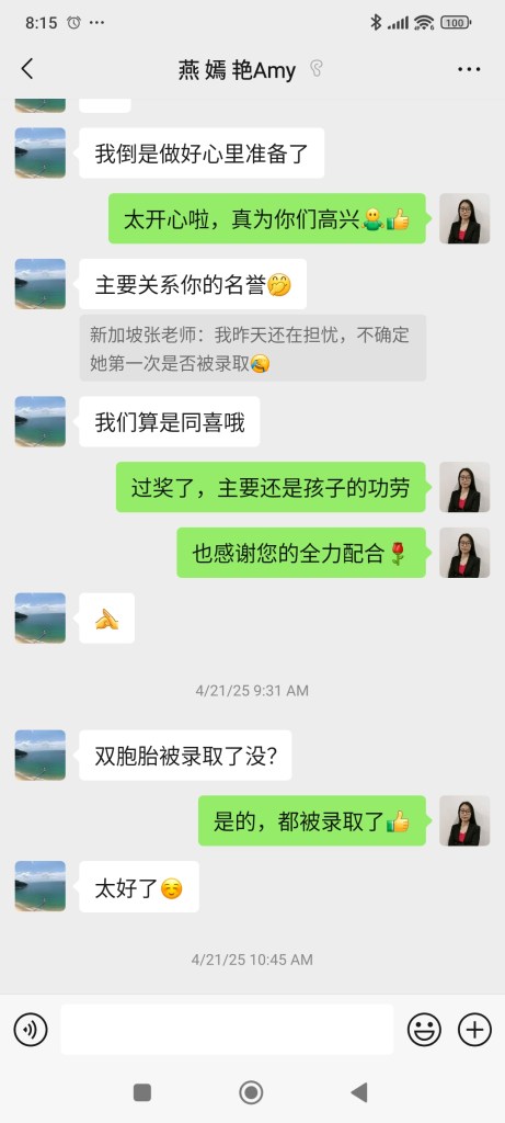 以下是我的一些学生案例。一些是国际学生上我的AEIS考试辅导课程、一些是来自新加坡国际学校的国际学生找我辅导英语和数学,另一些是新加坡本地学生找我强化数学和华文。