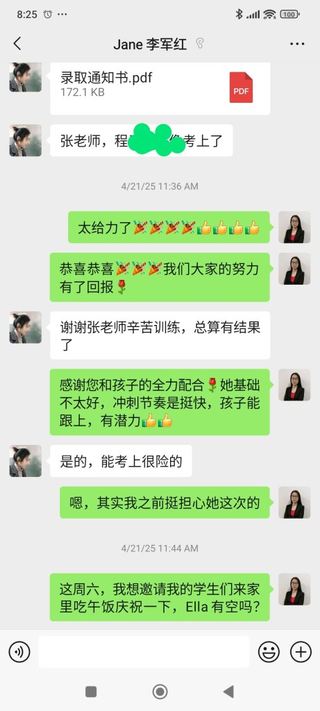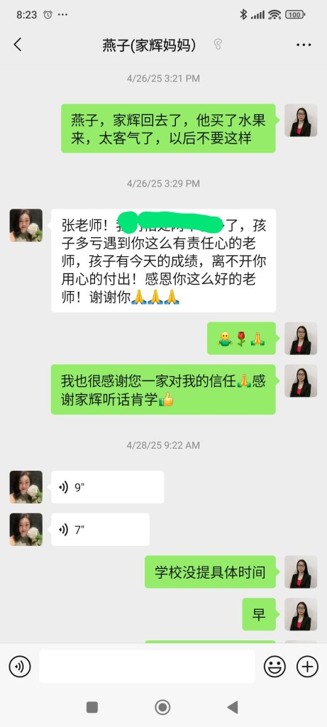 For international students from China already enrolled in public schools, Teacher Zhang’s English classes are regarded as their “go-to guide” — a powerful tool for quickly identifying and filling knowledge gaps. Within just a few months, these students have been able to build a strong and solid foundation in English through targeted and efficient learning.