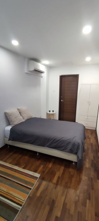 We have a domestic helper who cleans the house everyday. Each bedroom comes with an attached toilet and is cleaned on daily basis.